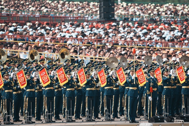 9月3日,紀(jì)念中國人民抗日戰(zhàn)爭(zhēng)暨世界反法西斯戰(zhàn)爭(zhēng)勝利80周年大會(huì)在北京隆重舉行。這是中國人民解放軍聯(lián)合軍樂團(tuán)在演奏。
