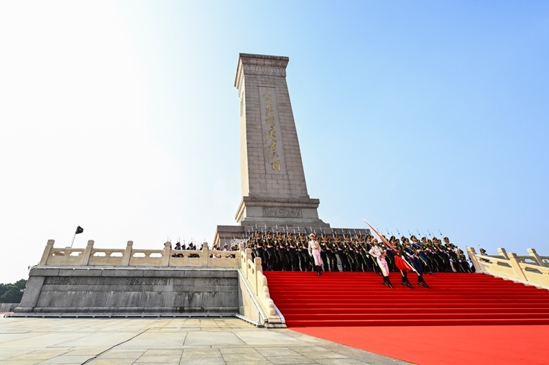 9月3日,紀(jì)念中國人民抗日戰(zhàn)爭(zhēng)暨世界反法西斯戰(zhàn)爭(zhēng)勝利80周年大會(huì)在北京隆重舉行。這是國旗護(hù)衛(wèi)隊(duì)從人民英雄紀(jì)念碑基座出發(fā),走向旗桿基座。
