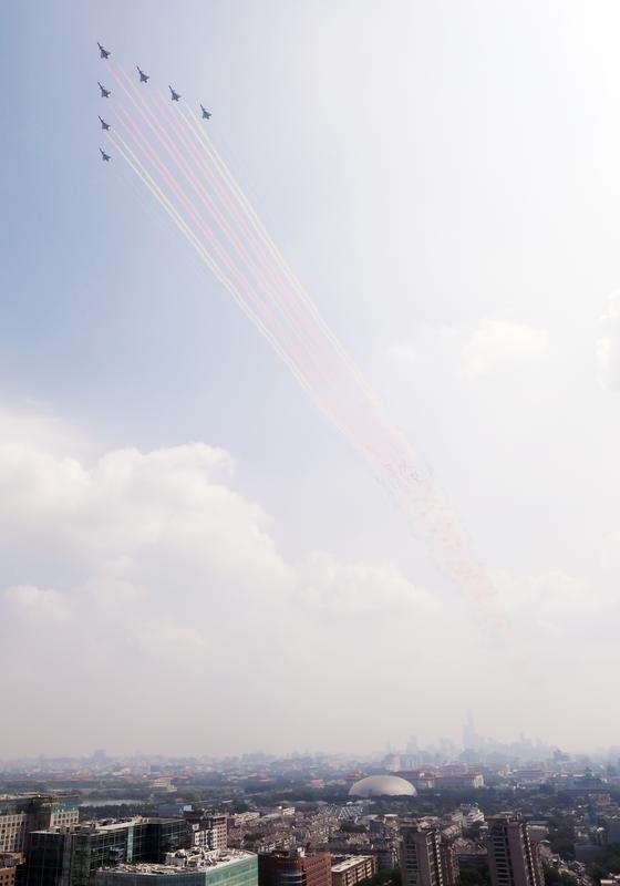 9月3日,紀(jì)念中國(guó)人民抗日戰(zhàn)爭(zhēng)暨世界反法西斯戰(zhàn)爭(zhēng)勝利80周年大會(huì)在北京隆重舉行。這是殲擊機(jī)梯隊(duì)接受檢閱。