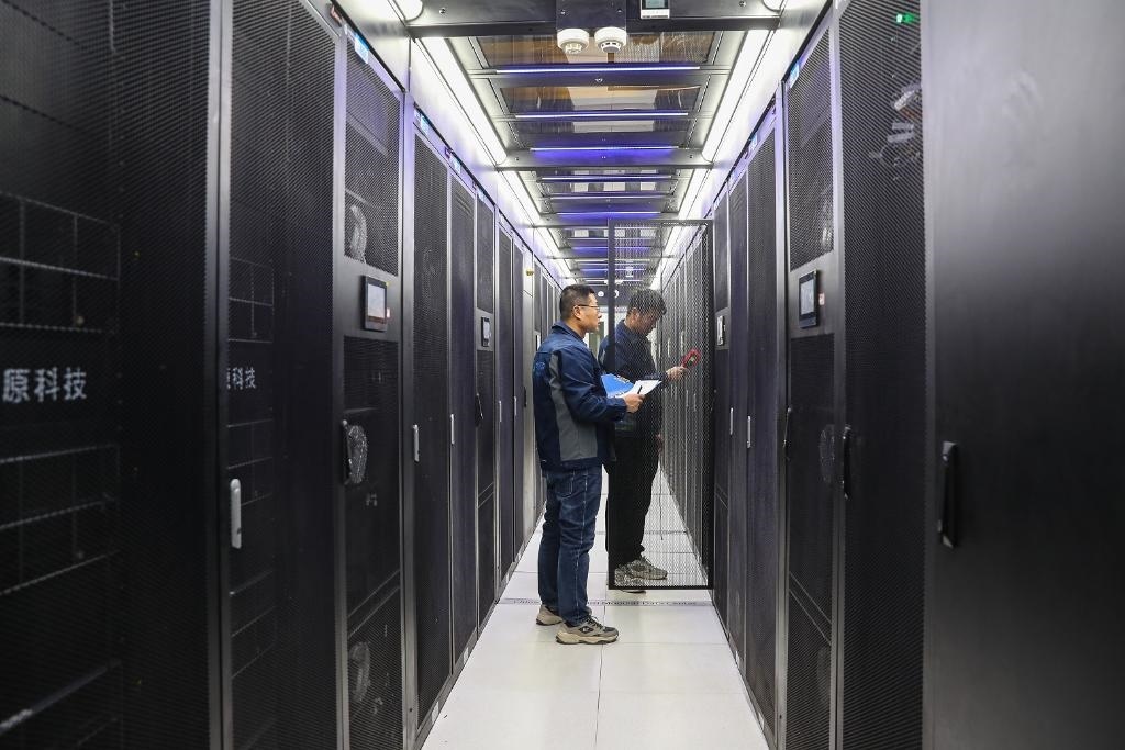 2025年1月6日,工作人員在中國(guó)移動(dòng)(甘肅·慶陽)數(shù)據(jù)中心機(jī)房?jī)?nèi)巡檢。 新華社記者 郎兵兵 攝