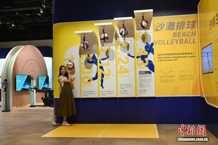 10月23日,香港科學(xué)館舉辦“國家發(fā)展成就系列──臻至完美:運(yùn)動與科學(xué)的交匯”展覽,展示全國運(yùn)動會的歷史及第十五屆全國運(yùn)動會香港賽區(qū)的賽事項(xiàng)目。圖為一名女士體驗(yàn)沙灘排球項(xiàng)目,了解運(yùn)動員的跳躍高度。 中新網(wǎng)記者 李志華 攝