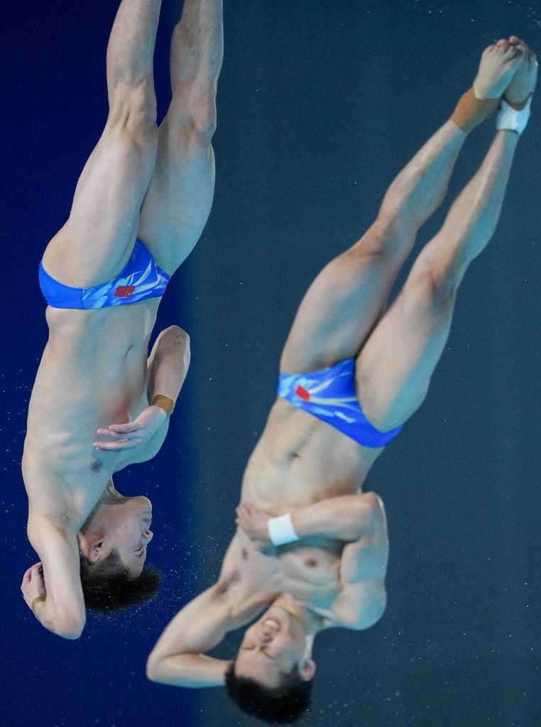 11月3日,廣東隊組合陳艾森/朱子鋒在男子雙人10米跳臺比賽中。新華社記者 薛宇舸 攝