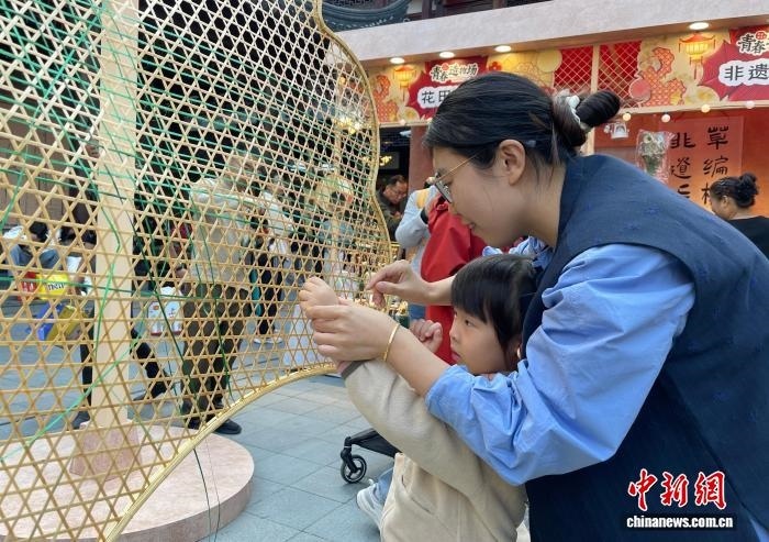 11月14日,2025豫園非遺季在上海豫園商城開(kāi)幕。圖為小朋友體驗(yàn)竹編。中新社記者 鄭瑩瑩 攝