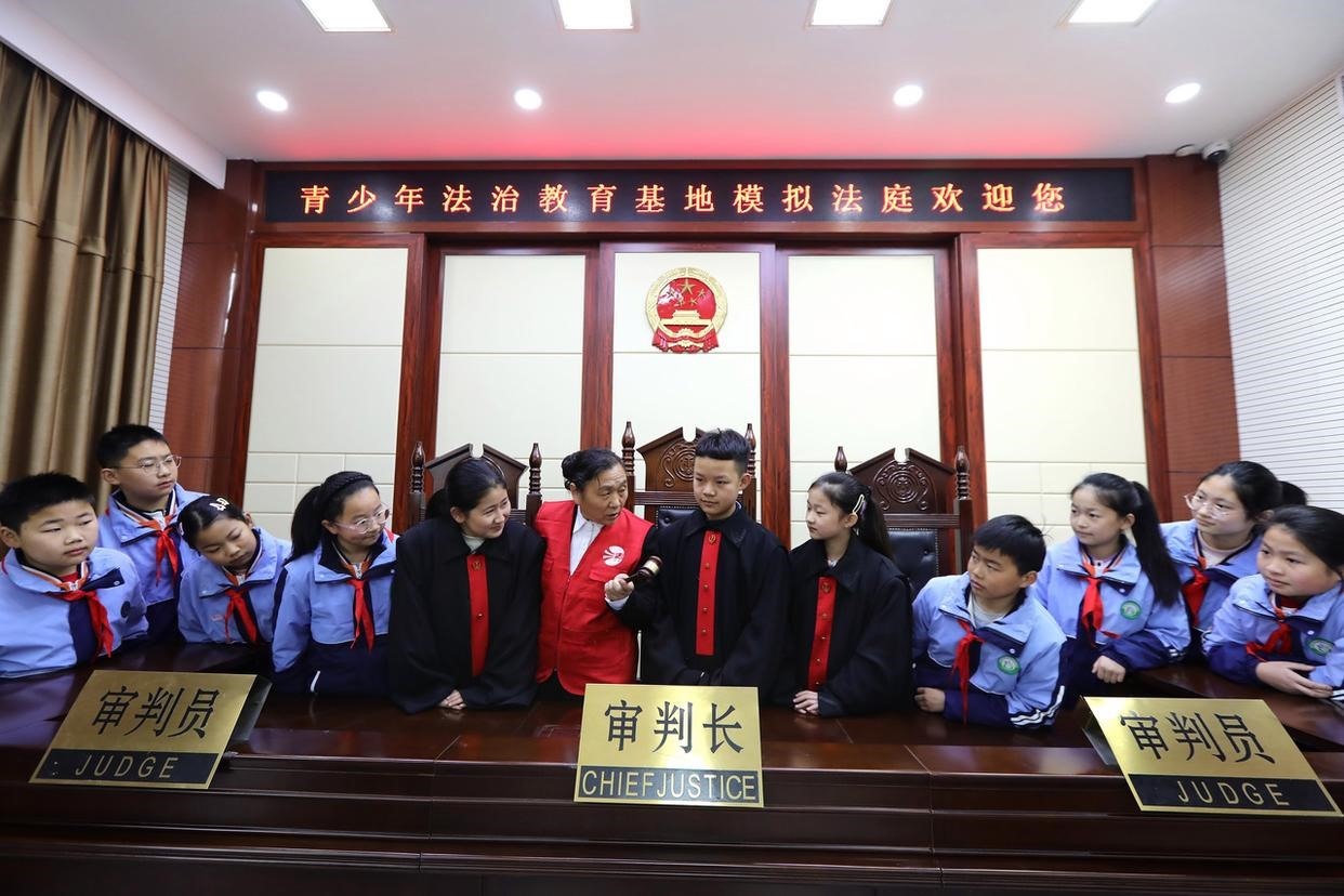 12月2日,孩子們在學(xué)習(xí)憲法知識、體驗(yàn)“模擬法庭”,“沉浸式”感知法律的神圣與威嚴(yán),在潛移默化中接受法治教育,爭做一個學(xué)法、懂法、守法的新時代好公民。(工人日報(bào)通訊員 李海濤 攝)
