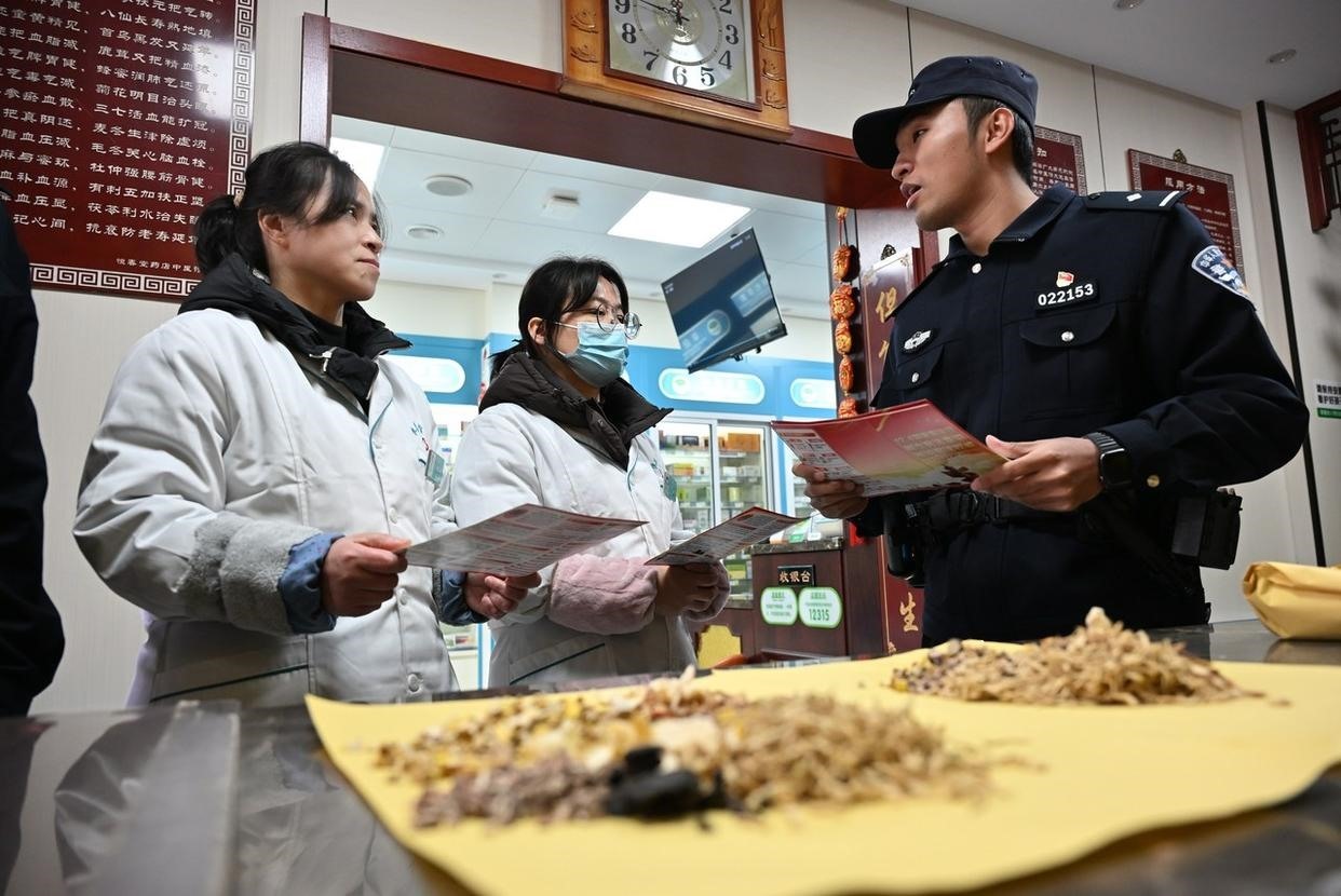 12月4日,安徽省當(dāng)涂縣公安局姑孰派出所民警走街串巷開展法治宣傳活動。(工人日報(bào)通訊員 衛(wèi)學(xué)超 攝)