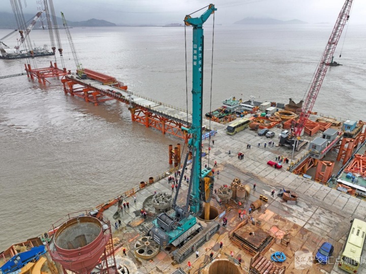 山河智能SWDM1280型旋挖鉆機(jī)在甬舟鐵路西堠門(mén)公鐵兩用跨海大橋施工
