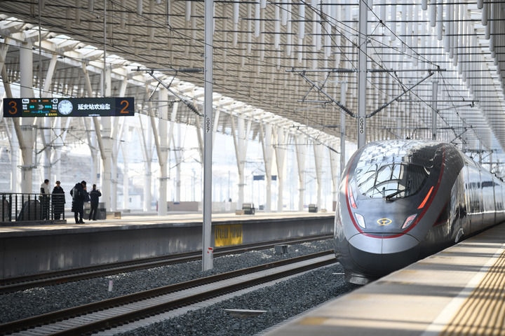 冬日暖陽,灑向延安火車站的站臺。26日10時許,“復興號”智能動車組列車駛出站臺,向著關中平原飛馳而去,縈繞在老區(qū)幾代人心中的高鐵夢照進現(xiàn)實。