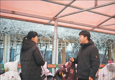 1月5日,河北省曲陽縣永寧社區(qū)永寧花園小區(qū)內,社區(qū)干部(右)向居民了解車棚使用情況。受訪者供圖