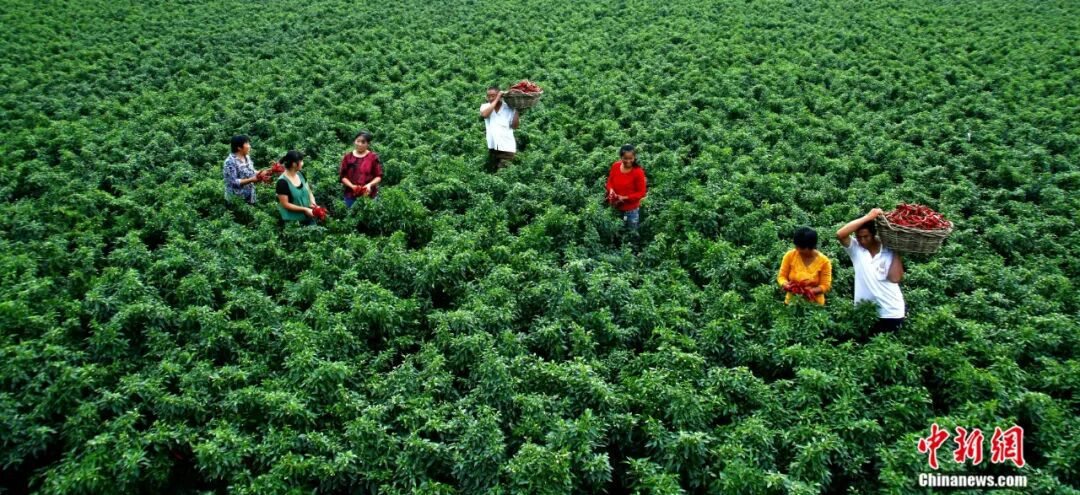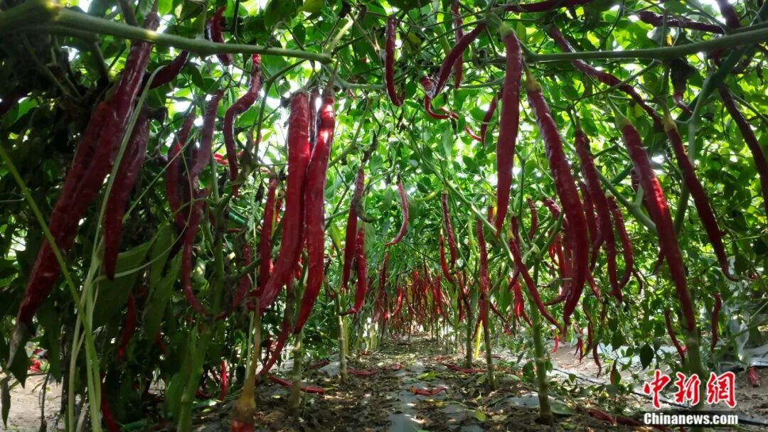 冀南平原上,連片的辣椒田如紅色海洋翻涌——細(xì)長(zhǎng)的羊角椒緊緊扒著枝頭蕩來(lái)蕩去,油亮的皮膚曬得通紅。