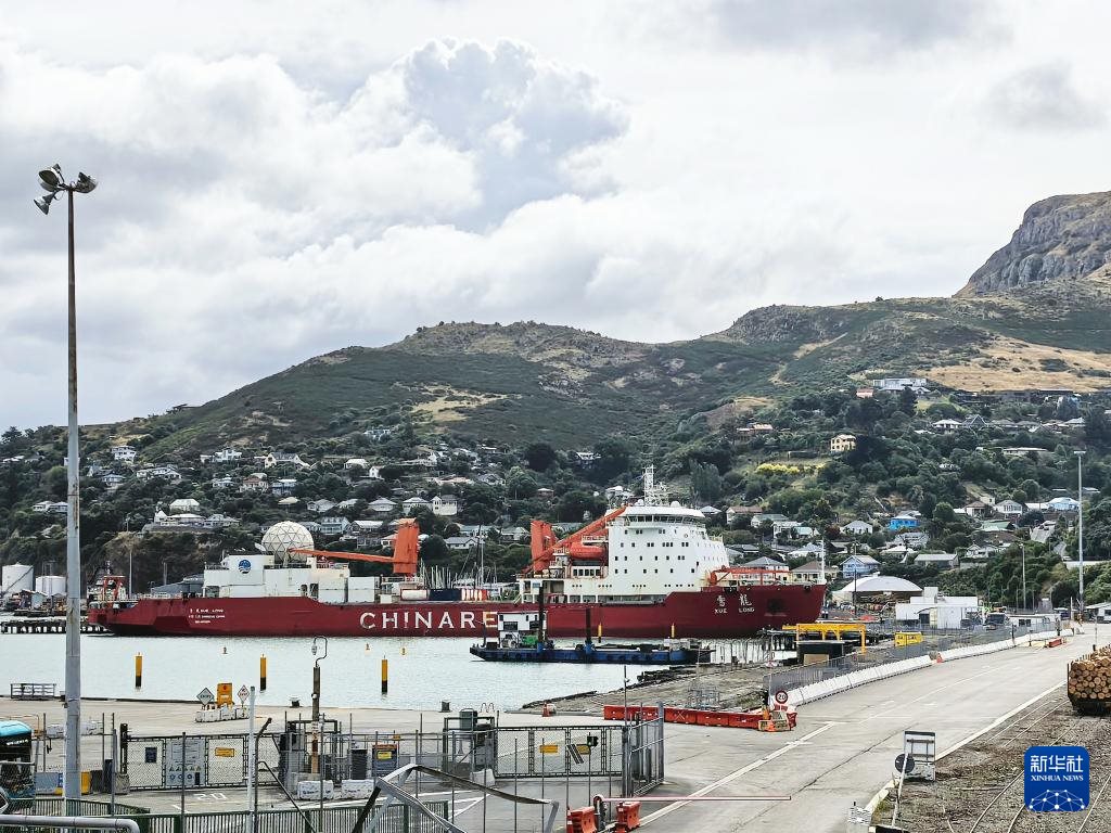 1月14日,“雪龍”號??吭谛挛魈m克賴斯特徹奇市利特爾頓港。新華社記者 顧天成 攝