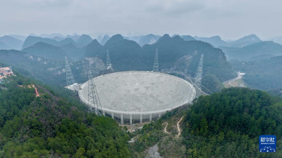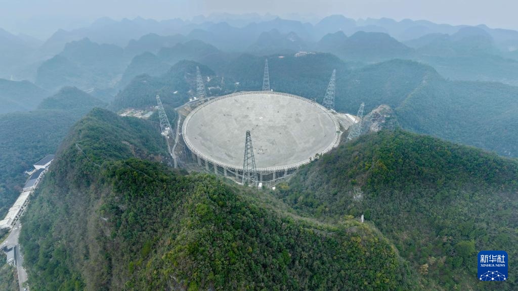 1月16日拍攝的“中國天眼”(無人機(jī)照片,維護(hù)保養(yǎng)期間拍攝)。