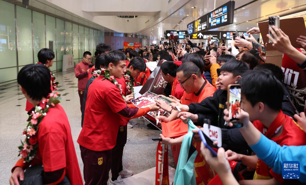 1月26日,大批球迷在機(jī)場歡迎中國隊歸來。