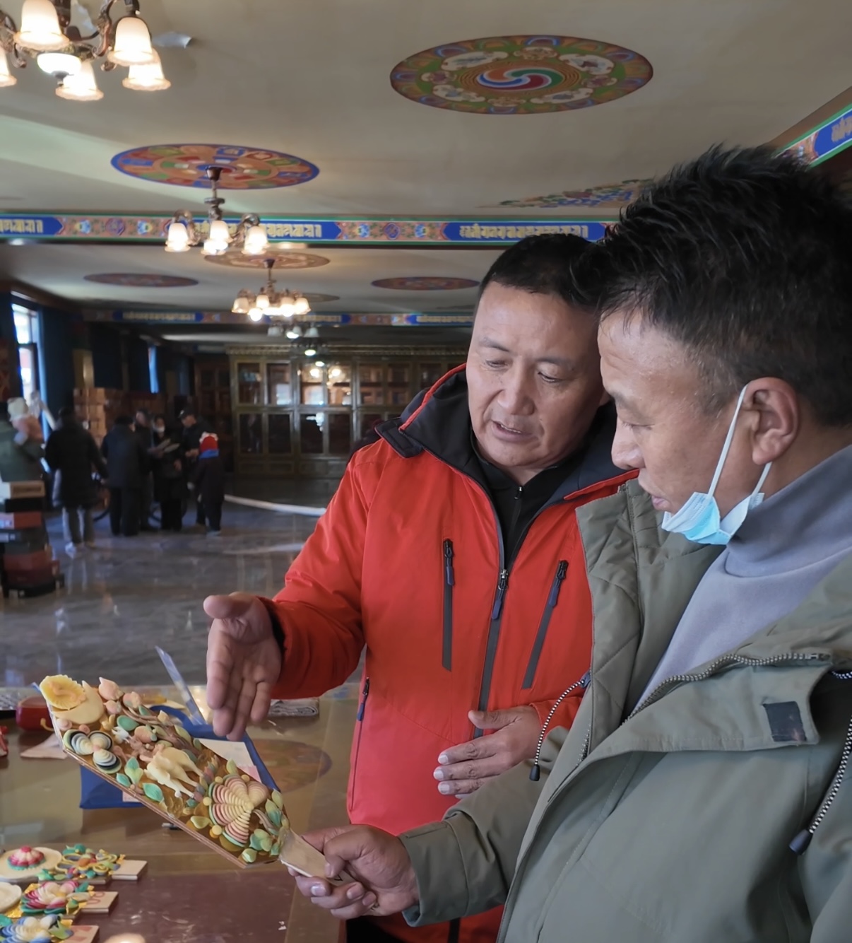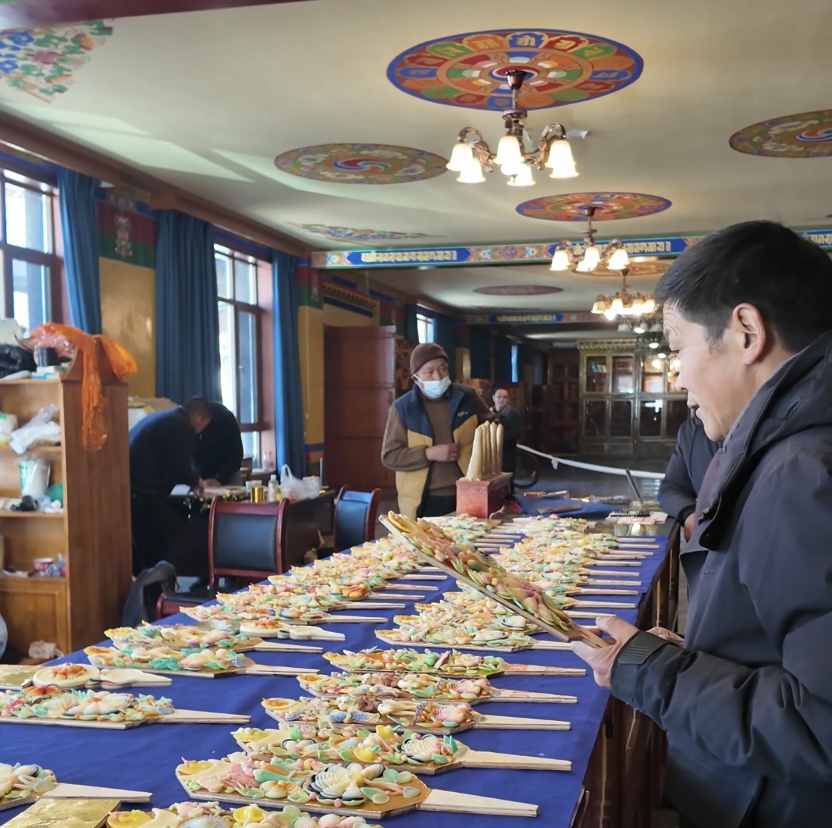 “哪種圖案寓意更好?”“‘八吉祥徽’和‘和睦四瑞’能搭配嗎?”問(wèn)題接連不斷,倫珠忙得幾乎腳不沾地。他介紹,合作社于2025年11月成立,匯集了30多位手藝精湛的老師傅。為應(yīng)對(duì)新年需求,大家提前一個(gè)月便開始制作,沒(méi)想到開售僅3天,1500多對(duì)酥油花便已售出,備貨幾乎告罄。