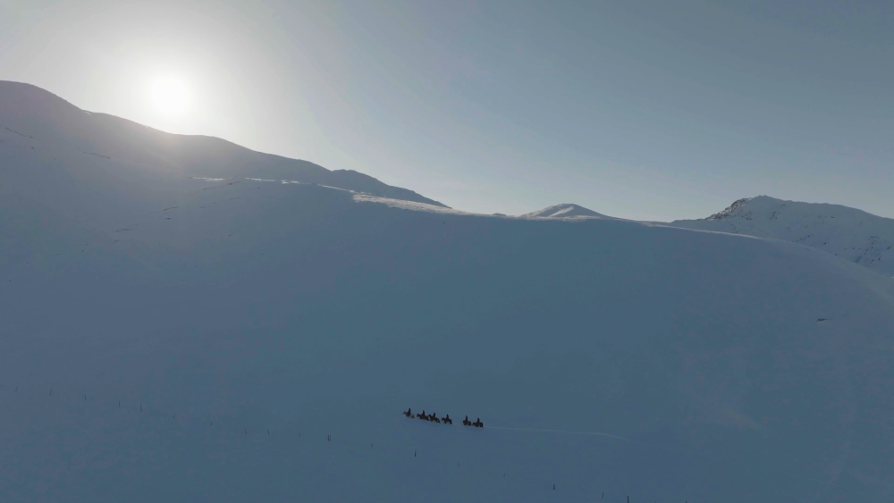 在如刀的風(fēng)中和遼闊的雪原,一群年輕的騎士策馬前行,即使臉被風(fēng)吹紅,手腳凍開裂,也沒(méi)有停下腳步。