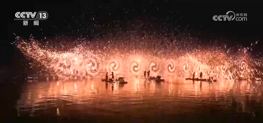 夜幕降臨,古城外的打鐵花表演震撼上演,表演者將滾燙的鐵水拋向空中,鐵水瞬間炸裂,金花四濺,如流星劃過夜空,引得現(xiàn)場(chǎng)喝彩聲此起彼伏。