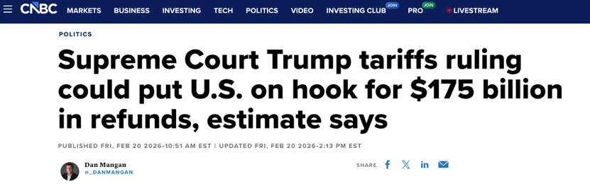 更值得注意的是,從近兩天動(dòng)作看,白宮的核心優(yōu)先級并不是“盡快把錢退回去”,而是“盡快把關(guān)稅工具續(xù)上”。白宮一方面通過行政令,終止依據(jù)IEEPA加征的額外從價(jià)稅,另一方面又迅速依《1974年貿(mào)易法》第一百二十二條祭出為期150天的臨時(shí)全球15%關(guān)稅,同時(shí)加大利用301條甚至232條等傳統(tǒng)工具,繼續(xù)搭建新的關(guān)稅墻。這套動(dòng)作釋放的信號十分明確:關(guān)稅杠桿要繼續(xù)用,至于已經(jīng)收來的稅款怎么退、退多少,姑且交給訴訟程序去磨。換句話說,即便法院逼著政府退錢,白宮也在試圖通過新一輪、基于其他法律授權(quán)的關(guān)稅,把現(xiàn)金流盡可能補(bǔ)回來。