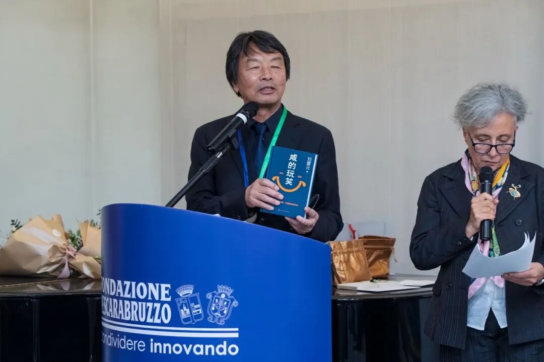 2026年2月20日,劉震云在意大利國際南北文學(xué)獎的頒獎儀式上講話,旁邊為其作品意大利語翻譯李莎(Patrizia Liberati)。