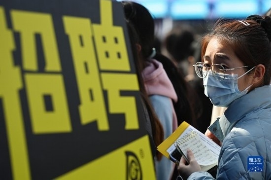 3月25日,求職者參加2023年西安市春季大型人才招聘會。
