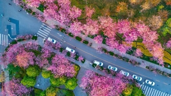云南大學校園內(nèi)櫻花爛漫。云南大學供圖