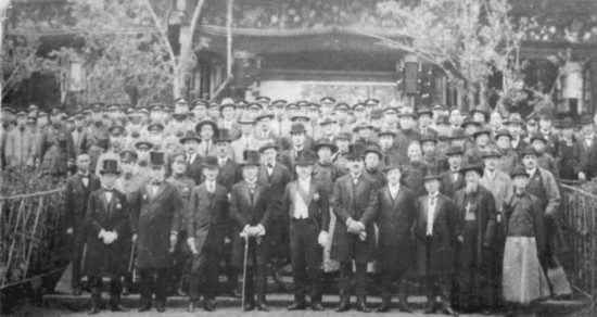 1923年4月20日,東陸大學隆重舉行新校舍奠基典禮暨大學開學典禮。奠基儀式后,唐繼堯(左5)、董澤(左1)與英、美、法、日等國領(lǐng)事、河內(nèi)大學代表、省議會議長、航空處處長等政府官員合影。云南大學供圖
