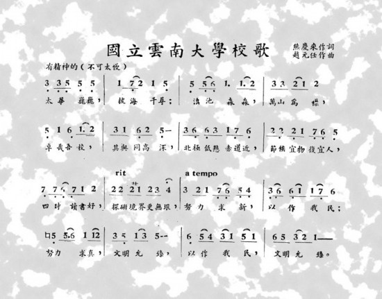 圖熊慶來作詞、趙元任作曲的國立云南大學校歌。云南大學供圖