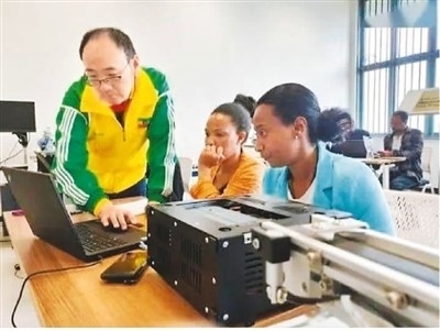在阿萊姆感謝的天職師大教師中,江絳無疑是最知名的一位,作為埃塞魯班工坊中方負責(zé)人,他和妻子在新冠疫情期間始終堅守在埃塞俄比亞,帶領(lǐng)當?shù)貛熒瓿闪怂袑嵱?xùn)裝備的安裝調(diào)試并積極投身當?shù)亟虒W(xué)工作。相關(guān)事跡經(jīng)諸多媒體報道而廣泛傳播,成為中國職教人服務(wù)海外的一段佳話。