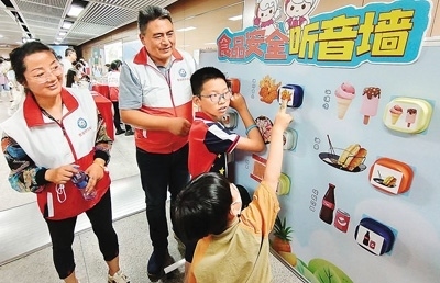 日前,福建省廈門(mén)市婦聯(lián)攜手相關(guān)部門(mén)舉辦“快樂(lè)‘六一’ 安全童行”2023年“六一”體驗(yàn)式生命教育趣味游園活動(dòng)。圖為小朋友們?cè)趨⒓邮称钒踩?tīng)音墻活動(dòng)。 徐 林?jǐn)z