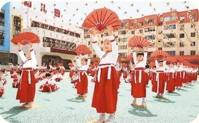 5月30日,甘肅省定西市安定區(qū)中華路幼兒園的小朋友們?cè)诒硌莨?jié)目,在快樂(lè)的氛圍中迎接兒童節(jié)。 王克賢攝(新華社發(fā))