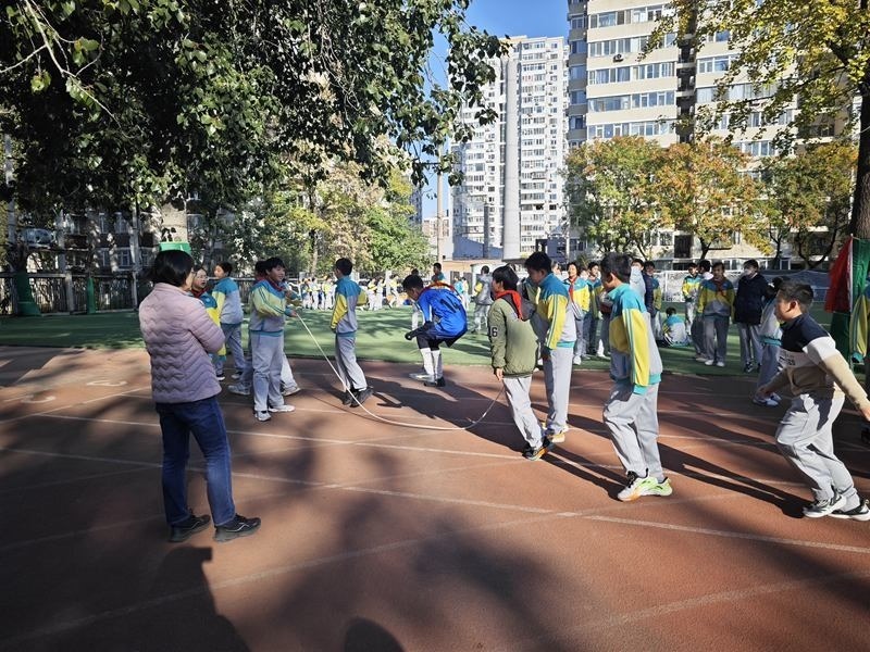 為了引導(dǎo)孩子們課間走出教室,北醫(yī)附小根據(jù)季節(jié)設(shè)計(jì)大型集體項(xiàng)目,比如秋季開(kāi)展的跳長(zhǎng)繩,老師們也參與進(jìn)來(lái)?yè)u繩,帶動(dòng)更多孩子參加體育鍛煉。“讓學(xué)生在課間得到充分休息、活動(dòng),才能保證學(xué)生的課堂狀態(tài),從而促進(jìn)課堂教育教學(xué)質(zhì)量提升?!碧飮?guó)英表示。