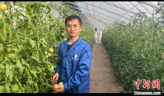 大多數(shù)時(shí)間,這位穿著黑色羽絨服的“95后”博士會(huì)與師弟李浩杰待在滿眼綠色的大棚內(nèi),觀察枝頭上的番茄,偶爾也會(huì)摘下來嘗嘗果實(shí)是否可口。
