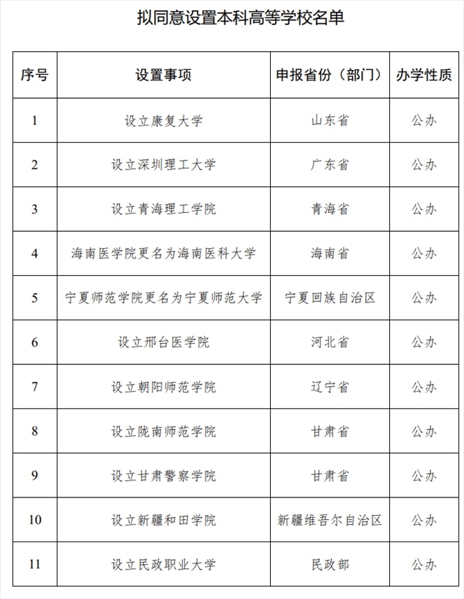 教育部公示:擬同意設(shè)置24所本科高校