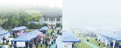 復(fù)旦大學(xué)開(kāi)展生涯服務(wù)集市活動(dòng),促進(jìn)人才供需對(duì)接。岑丹峰攝
