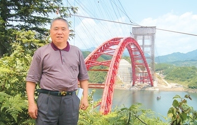 由鄭皆連指導建造的安徽黃山太平湖大橋跨徑達330米。圖為鄭皆連在施工現(xiàn)場。