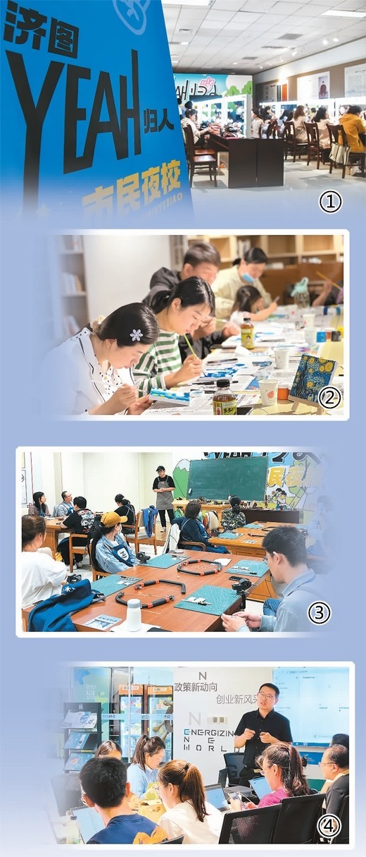 濟南“‘YEAH歸人’泉民夜?!痹谡n程設(shè)置、校區(qū)布局、師資配備等方面均進行了全面提升?!霸黾咏虒W(xué)點后,市民不僅能在專業(yè)機構(gòu)里上夜校,也能夠在家門口,在熱門文化‘新空間’里就近選擇自己心儀的課程?!睗鲜形幕^副館長張鈞善說。