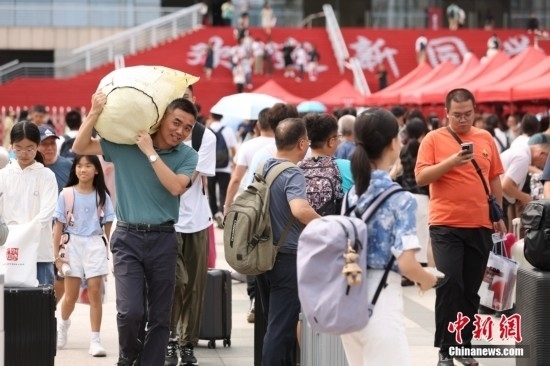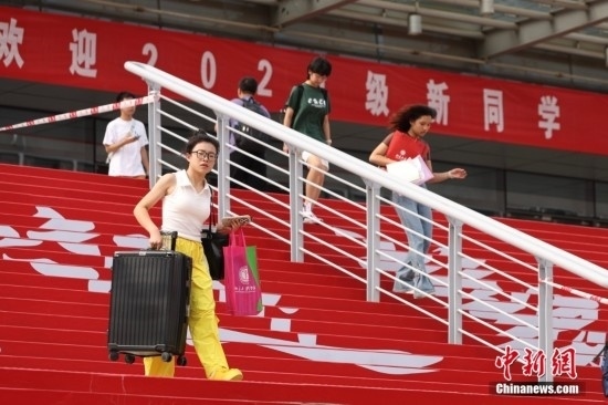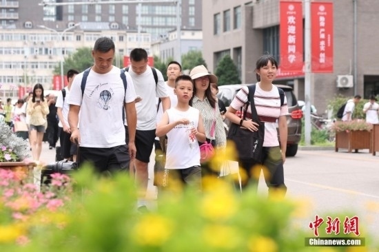 8月19日,北京大學迎來2024級新生報到。圖為學生帶著家人一起報到。