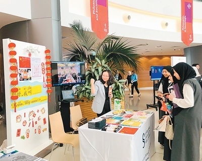 今年2月,張翠翠(左)參加索邦大學(xué)阿布扎比校區(qū)的開(kāi)放日活動(dòng)。(本文配圖由中國(guó)國(guó)際中文教育基金會(huì)提供)
