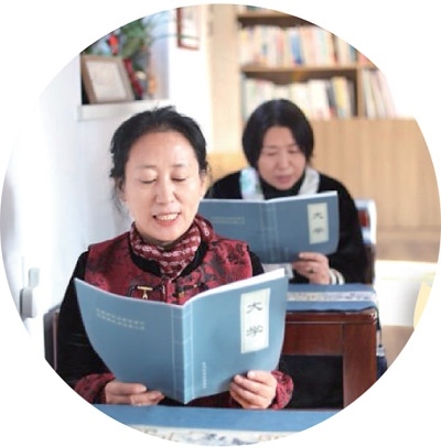 龍口市老年大學國學班的學員在課堂上誦讀《大學》。