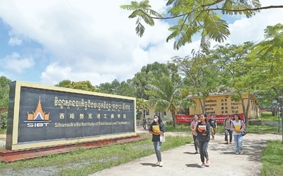 西哈努克港工商學(xué)院由柬埔寨西港特區(qū)公司聯(lián)合中國(guó)無(wú)錫商業(yè)職業(yè)技術(shù)學(xué)院共同創(chuàng)辦,是柬埔寨首個(gè)中文大學(xué)。圖為學(xué)生們行走在校園。
