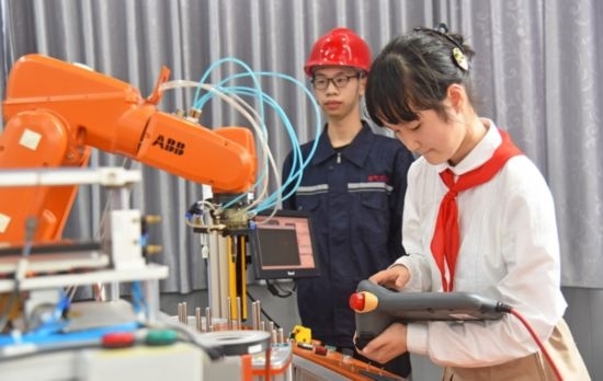 學(xué)生參加機器人課程
