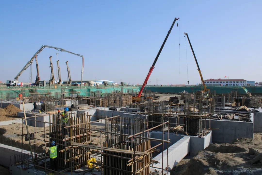 主廠房4號鍋爐承臺澆筑緊張進行中