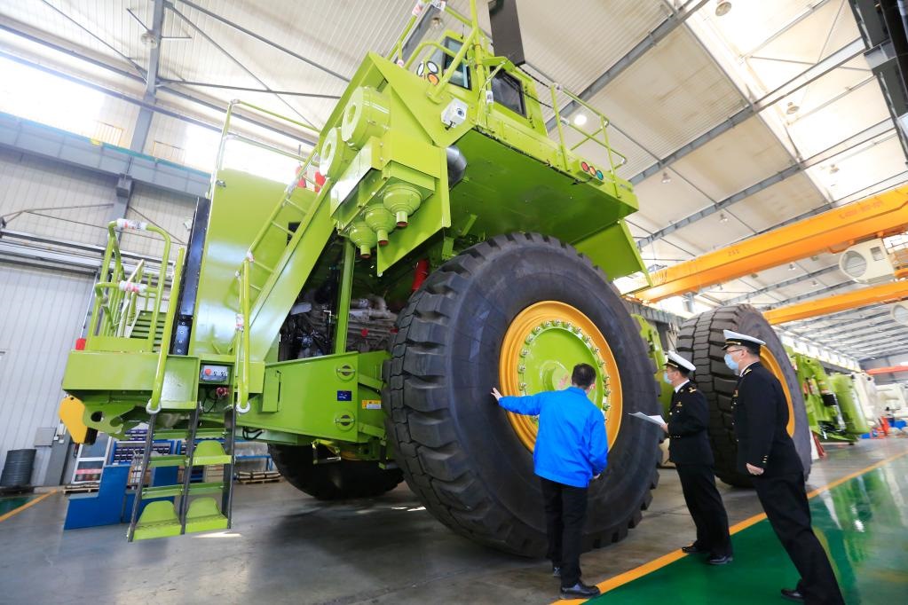包頭海關(guān)關(guān)員監(jiān)管內(nèi)蒙古北方重型汽車股份有限公司出口的礦用車。(受訪者供圖)