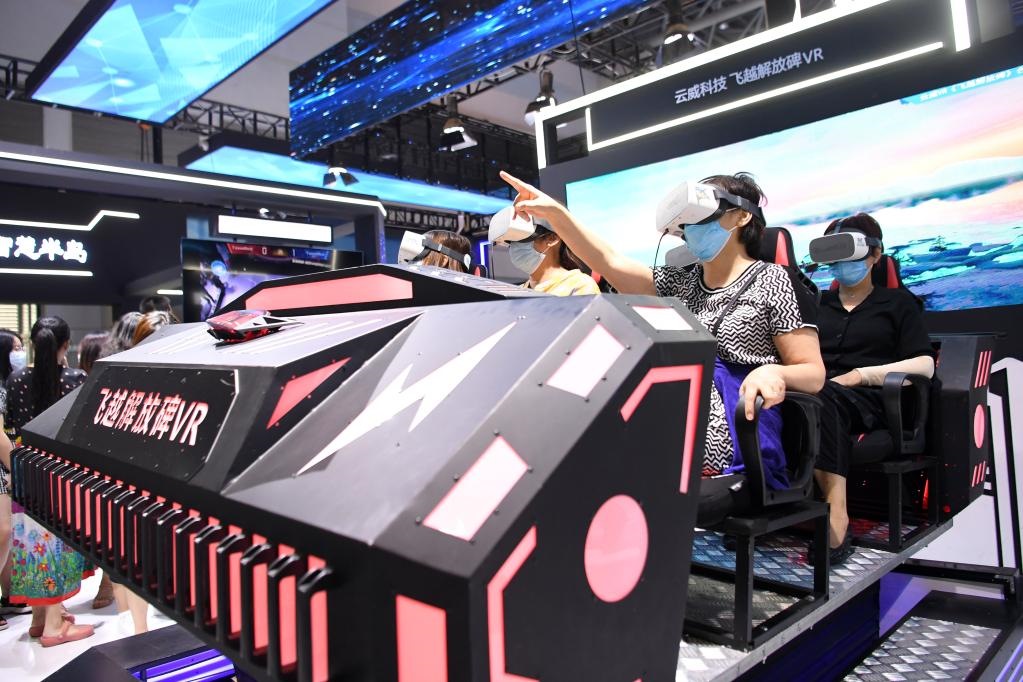 觀眾在2021智博會上通過VR技術(shù)體驗(yàn)重慶美景。新華社記者 唐奕 攝