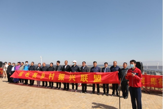 第18屆庫布其植樹節(jié)同步翻開了“鞏固脫貧攻堅成果、推動鄉(xiāng)村振興發(fā)展”的新篇章。在鄂爾多斯、杭錦旗各級黨委政府的領(lǐng)導(dǎo)下,億利集團(tuán)攜手鄂爾多斯市50多家中小企業(yè)、杭錦旗工商聯(lián)、國家稅務(wù)總局杭錦旗稅務(wù)局和相關(guān)的企業(yè)、公益機(jī)構(gòu)和社會愛心人士,聯(lián)合庫布其沙區(qū)的杭錦淖爾村、刀圖嘎查、沙日召嘎查、圖古日格嘎查、白音補(bǔ)拉嘎查、查干布拉嘎查、格更召嘎查,成立庫布其鄉(xiāng)村振興聯(lián)盟(以下簡稱“聯(lián)盟”),活動現(xiàn)場宣讀了《庫布其鄉(xiāng)村振興聯(lián)盟宣言》。聯(lián)盟將致力于重點(diǎn)推進(jìn)分布式光伏發(fā)電項目建設(shè),打造黃河文化、沙漠文化、民俗文化相結(jié)合的文化旅游村,進(jìn)一步發(fā)掘古如歌文化,建設(shè)好沙漠綠色生態(tài)公園,高質(zhì)量推動板下現(xiàn)代農(nóng)牧產(chǎn)業(yè)發(fā)展,同時依托億利在庫布其打造起來的一二三產(chǎn)業(yè)融合發(fā)展的產(chǎn)業(yè)平臺,切實(shí)推動庫布其周邊村嘎查鄉(xiāng)村振興。國家稅務(wù)總局杭錦旗稅務(wù)局在活動現(xiàn)場宣傳了稅務(wù)支持服務(wù)營商環(huán)境改善、減稅降費(fèi)、降碳擴(kuò)綠等惠民惠企政策,營造“稅企村”共同助力黃河流域生態(tài)保護(hù)與高質(zhì)量發(fā)展、推動鄉(xiāng)村振興的新格局。