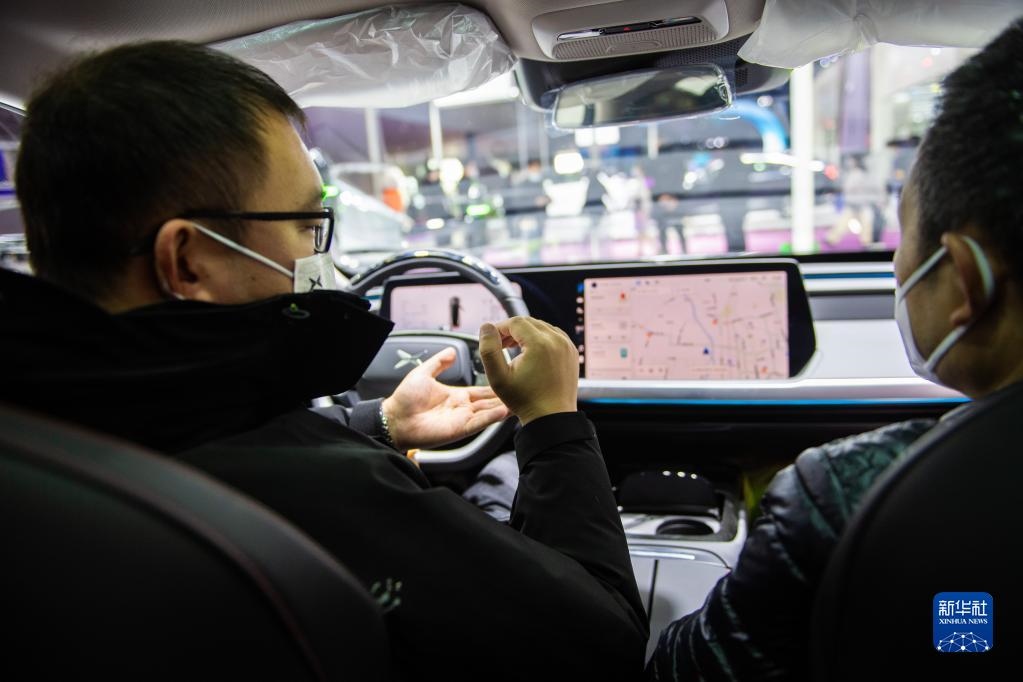 12月24日,在長(zhǎng)沙國(guó)際會(huì)展中心,工作人員(左)向觀眾介紹展車(chē)。新華社記者 陳思汗 攝