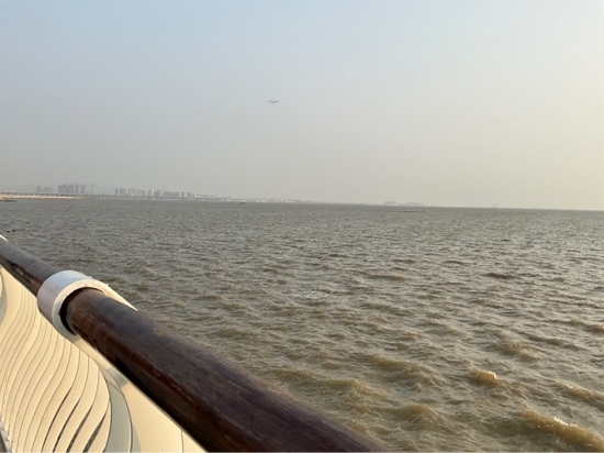 飛機飛過濱海驛站上空。人民網記者 趙雯攝