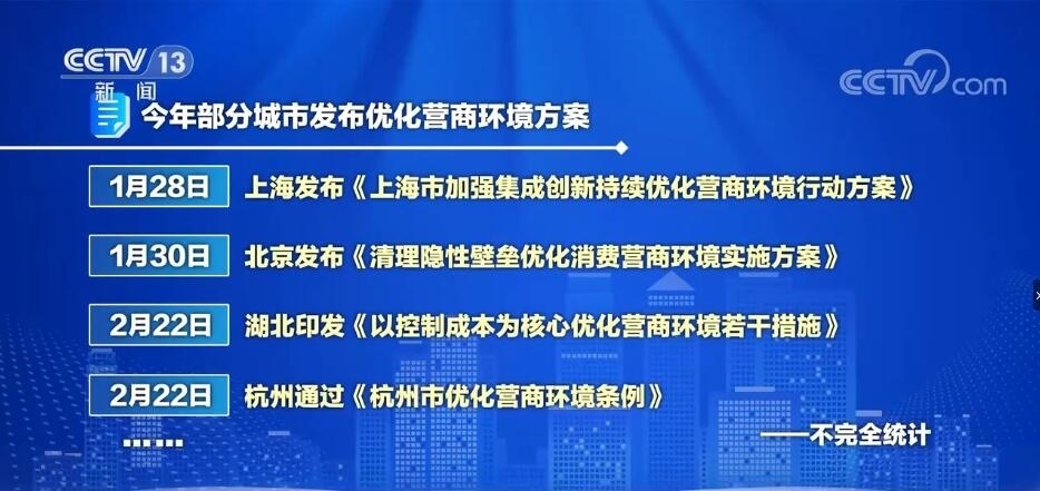 解說(shuō):同樣是在1月28日,吉林省將營(yíng)商環(huán)境作為年度重點(diǎn)工作之一,民營(yíng)經(jīng)濟(jì)大省福建舉行了民營(yíng)經(jīng)濟(jì)代表人士座談會(huì),上海更是將優(yōu)化營(yíng)商環(huán)境建設(shè)作為開(kāi)年第一會(huì)的主題。