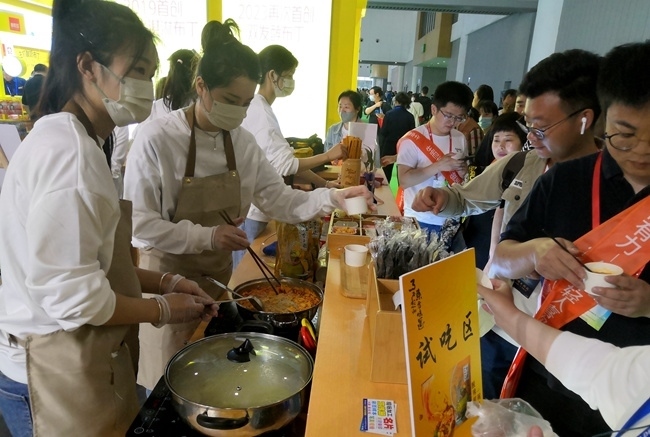 糖酒會(huì)上試吃區(qū)客商和觀眾排隊(duì)試吃產(chǎn)品。人民網(wǎng)記者 孫博洋攝