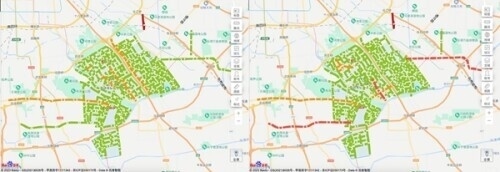 亦莊4月21日與4月28日晚高峰(17:00-19:00)交通擁堵對比