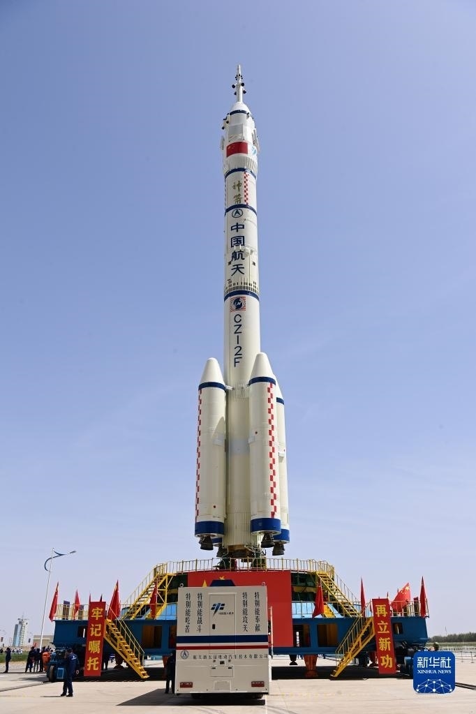 5月22日,神舟十六號載人飛船與長征二號F遙十六運載火箭組合體準備轉(zhuǎn)往發(fā)射場。新華社發(fā)(汪江波 攝)