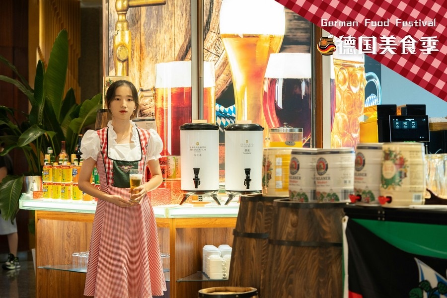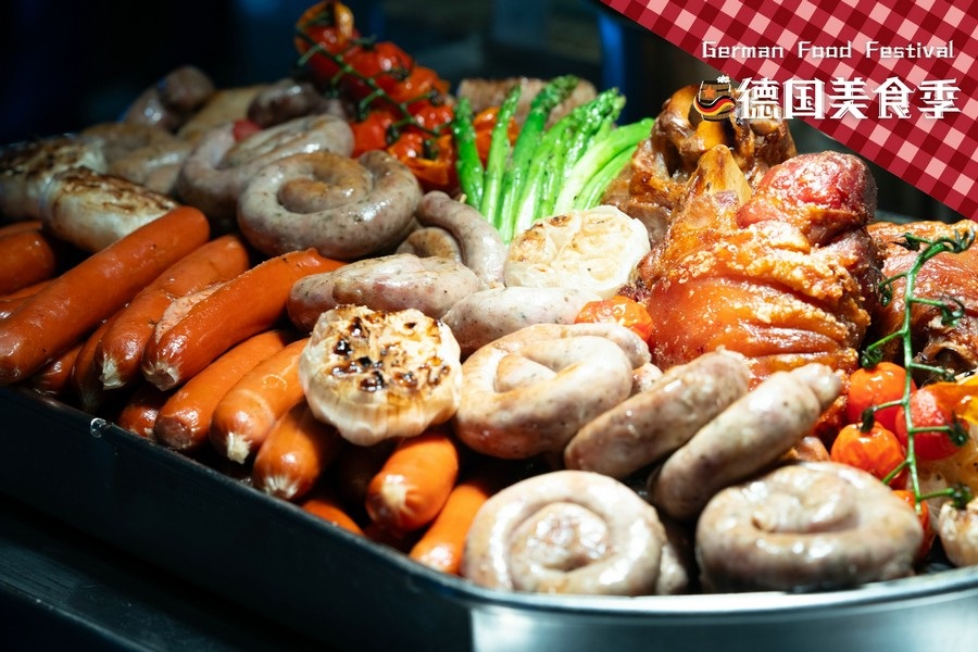 馨咖啡——海鮮洋酒自助,在行政總廚Jerry張強(qiáng)的加持下,再度增添美味的獨(dú)特體驗(yàn),8月9日—8月25日,正宗德式美食驚艷亮相!德國美食以其豐富多樣、實(shí)在美味和濃郁地方特色而聞名。來自德國巴伐利亞地區(qū)的特色美食“烤豬肘”, 外皮金黃酥脆,內(nèi)部肉質(zhì)鮮嫩多汁,搭配酸菜和土豆泥,口感豐富; 德國香腸種類繁多,芝士香腸、盤腸、圖靈根腸、法蘭克福腸、黑胡椒腸,制作工藝獨(dú)特,口味多樣;維也納炸豬排,酥脆的外皮和鮮嫩的肉質(zhì)形成的鮮明口感對比;德式芥末燴海鮮,德式芥末為這道菜帶來獨(dú)特的風(fēng)味,奶油、白葡萄酒、香草等調(diào)料,使湯汁變得濃郁醇厚,海鮮鮮嫩多汁,湯汁濃郁鮮美。更有享譽(yù)盛名的德國啤酒選擇,大麥的醇厚香氣、啤酒花的微微苦澀相互交織,營造出一種平衡而美妙的口感。